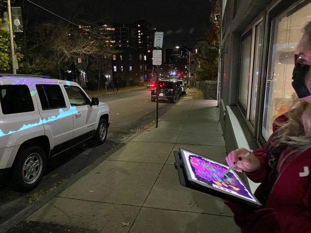 In reaction to the pandemic, Altering Interiors explores how we use space, and how to alter the space without affecting how we and others physically inhabit it. It is a collaboration with artists, the community, and the sites in which each work is created. It creates narratives and conversations around technology its capabilities to bring us together even when we can’t physically inhabit the spaces once used for gathering. It also opens up the opportunities to invite those from far away to interact with new surroundings by creating work in a space they may never step foot in.