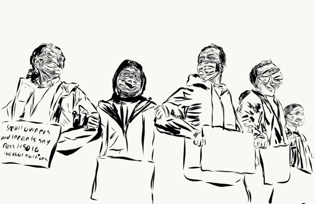 Digital Illustrations that depict life during the pandemic, from zoom rooms, remote learning, and Sheltering in place, to the housing crisis that removed people from their homes, these illustrations are a reflection of the effects of the pandemic on daily life.