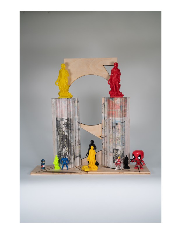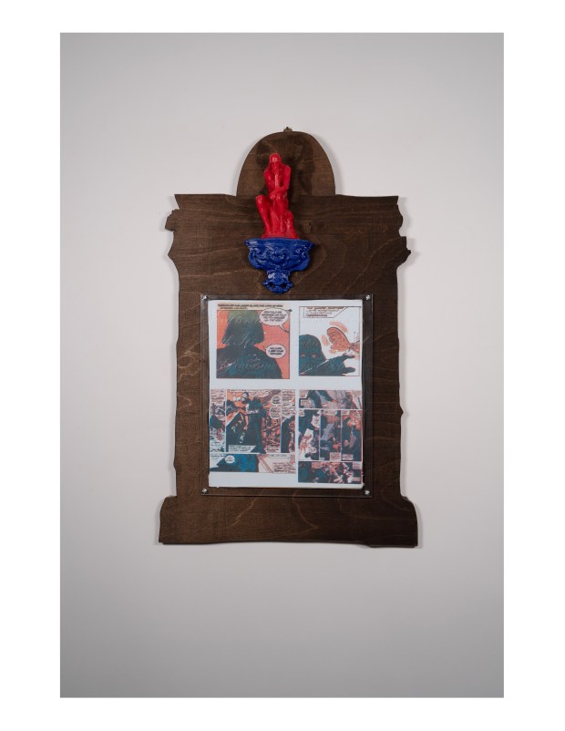 Assembled shrines from screenprints, lithographs, childhood toys, 3D prints, laser engraved wood, and Plexi. Works in response to religious idolitarity in the home as a response to popular culture’s ability to overcome religion in the household.