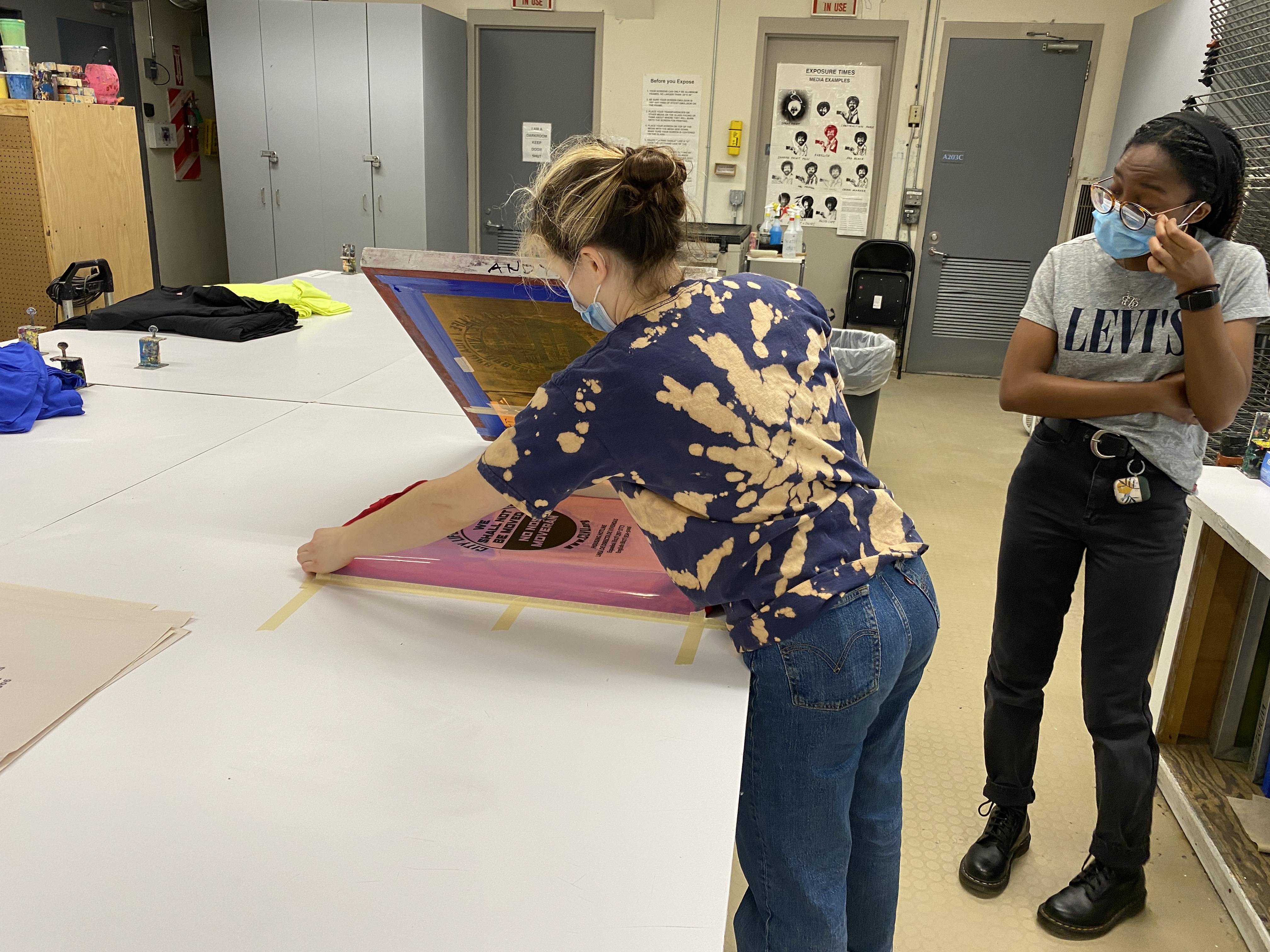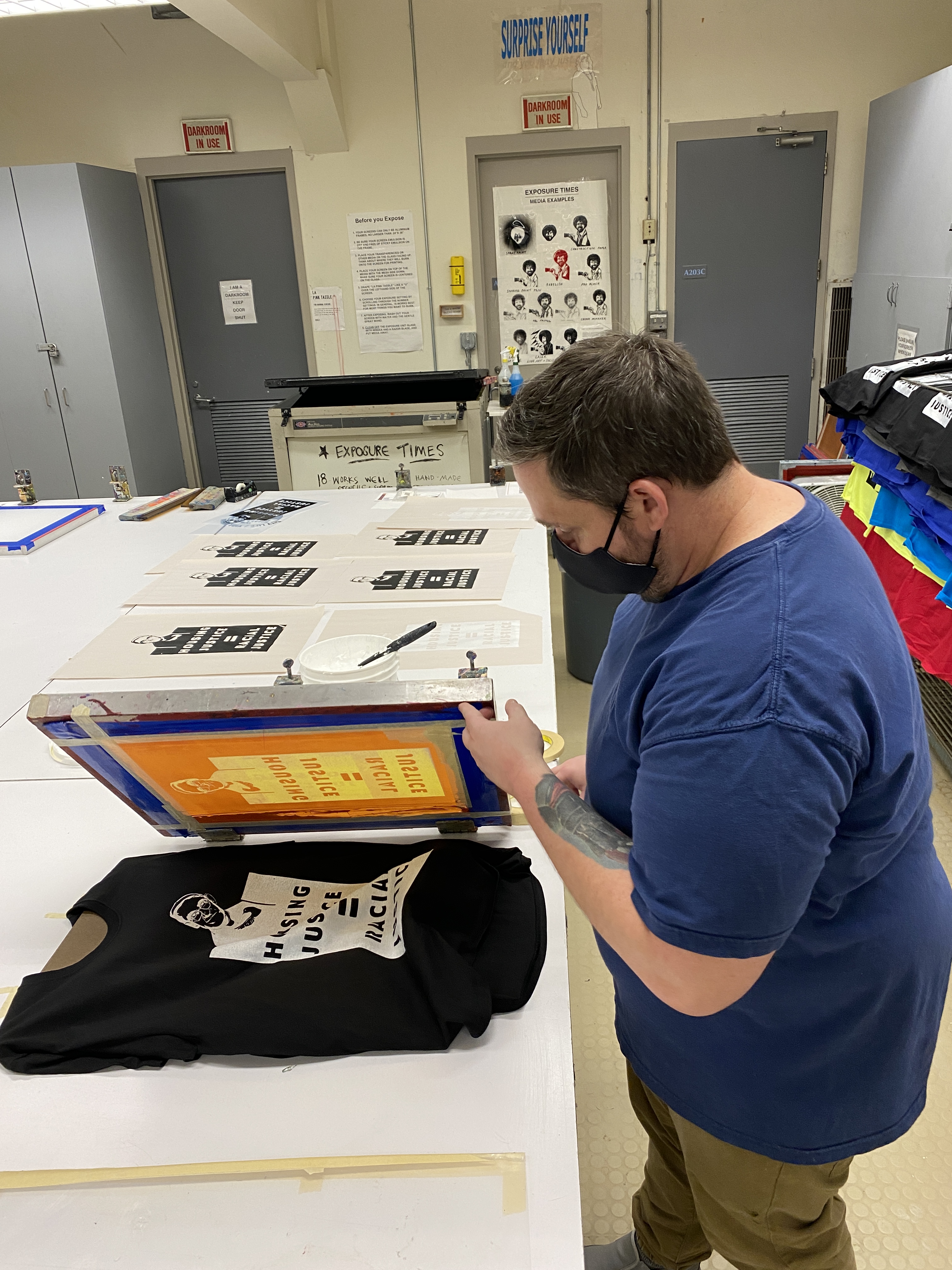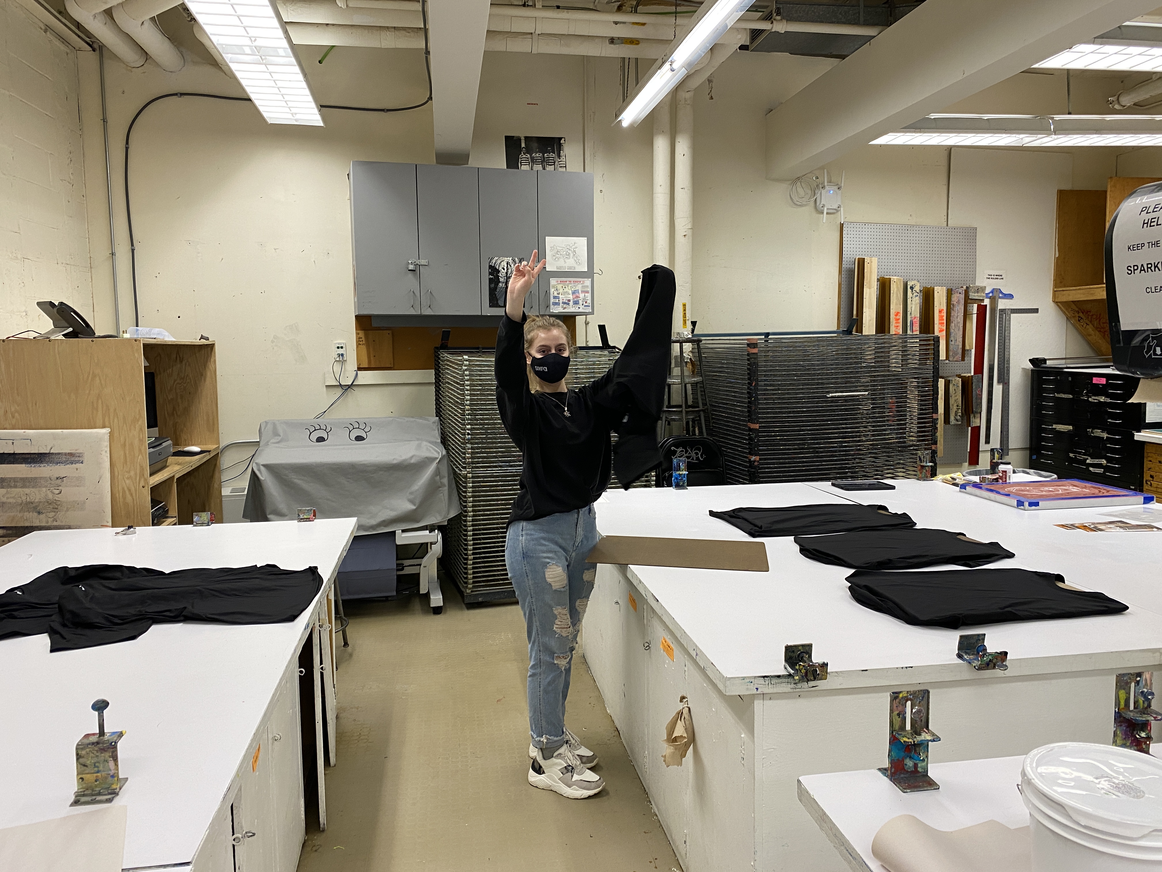 The project yielded over 200 pieces of PPE to hand out at eviction defense stations, as well as logos, and slogans and the production of 100 T-shirts, 300 masks, and Stencil kits built through collaboration with students and CLVU.