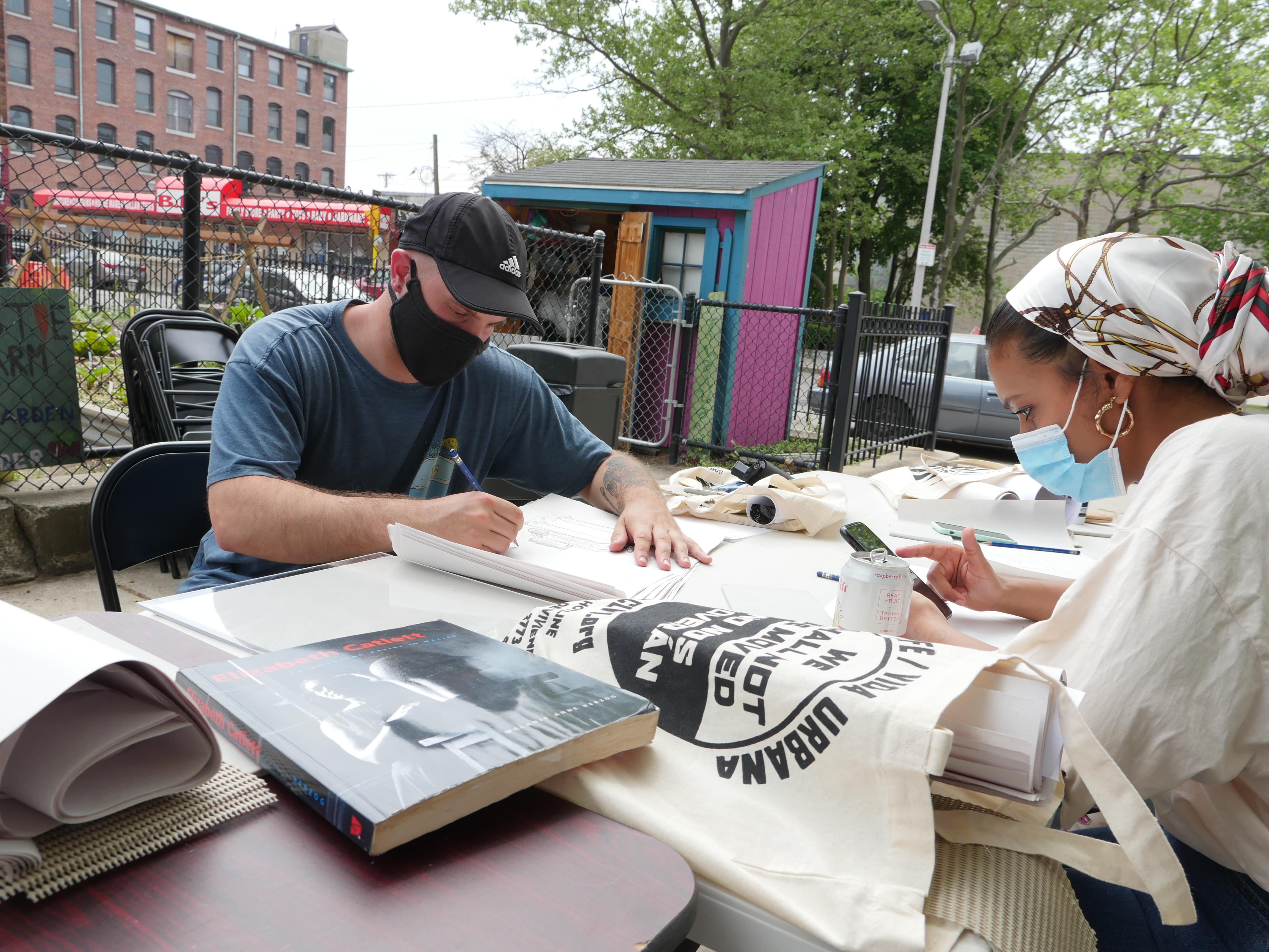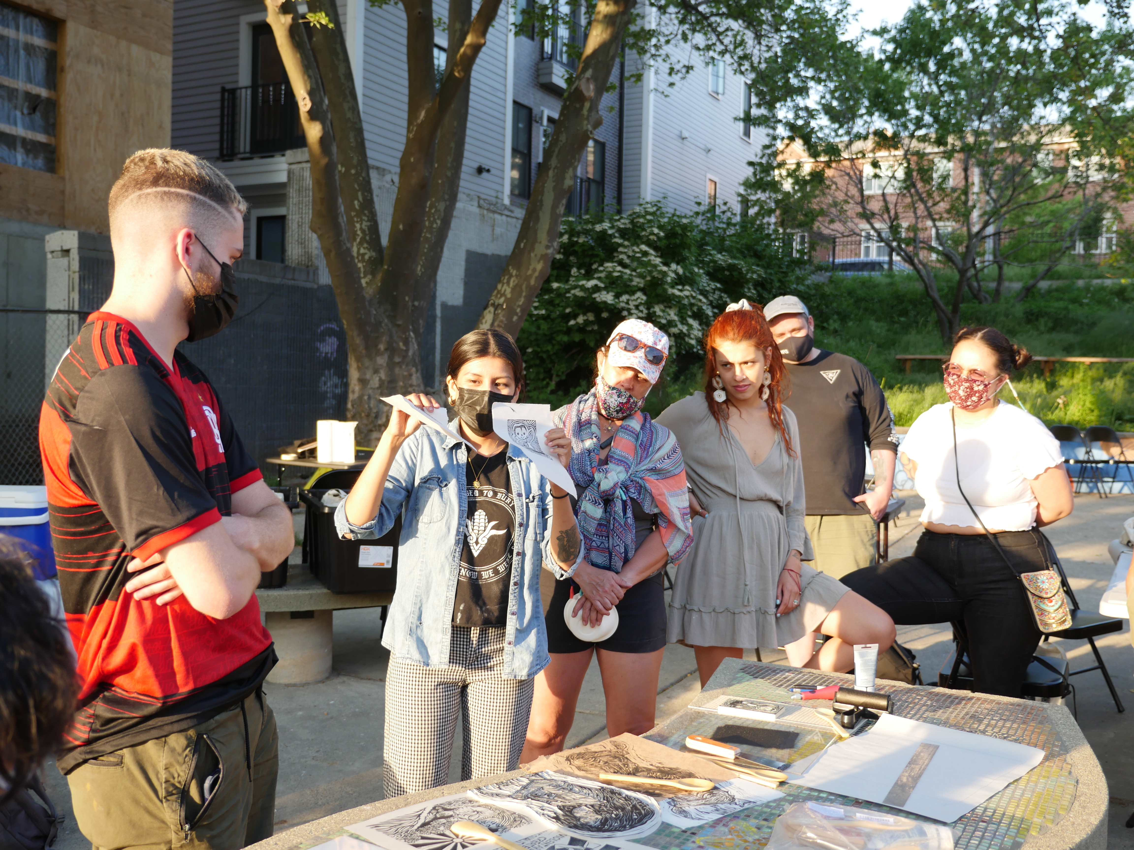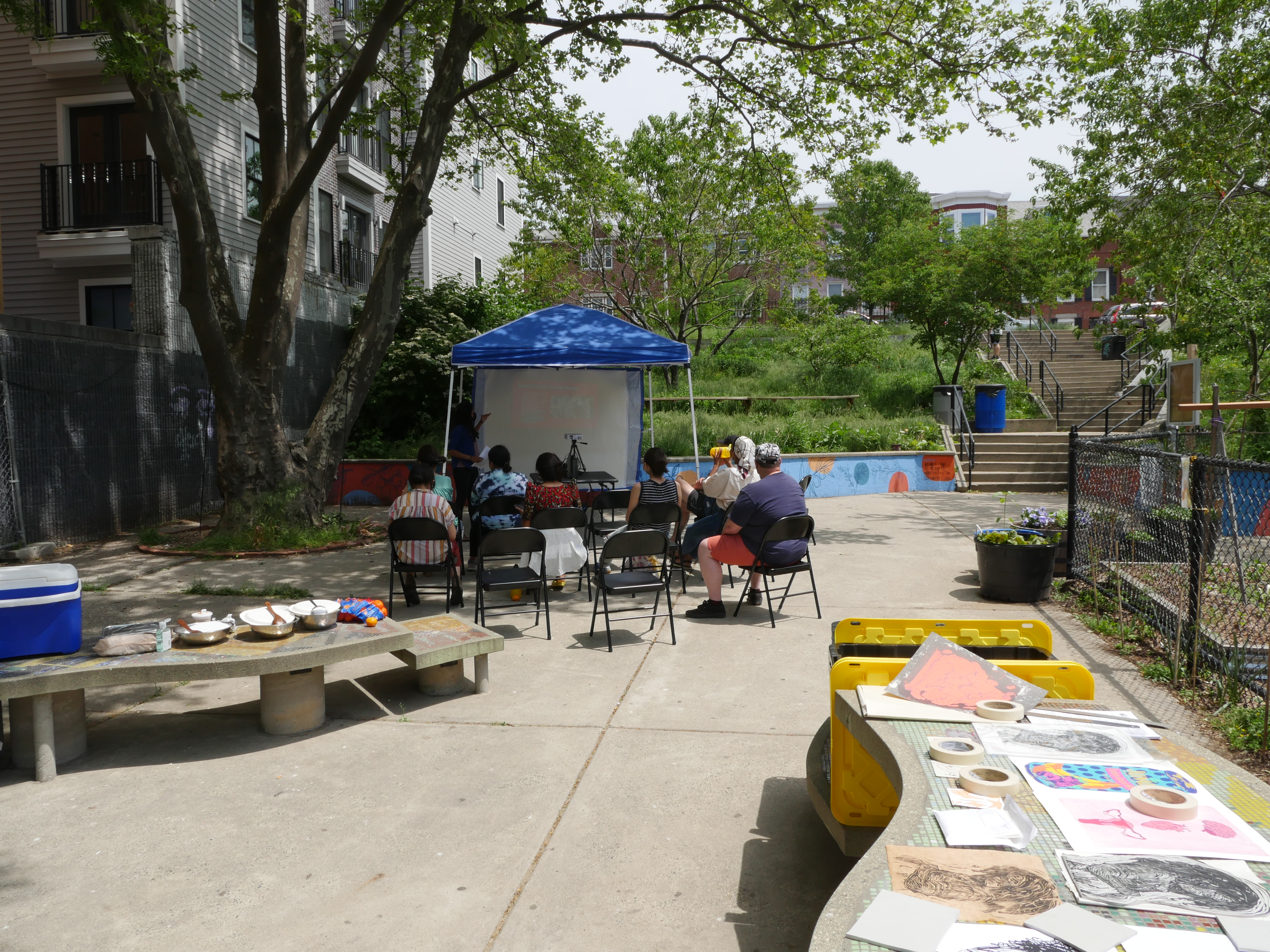 Community Poster Making 101, was a two-day collaborative community education workshop held at Eastie Farm in East Boston that taught about the history of printmaking as a form of protest, it gave the community members a chance to learn about eviction defense and places they could contact if they needed help, and gave participants supplies and knowledge to create their own prints from kits provided, the knowledge to create their own imagery, and the tools needed to reproduce and use this technique to further their voice and artistic practice from their own personal studios wherever they might be.