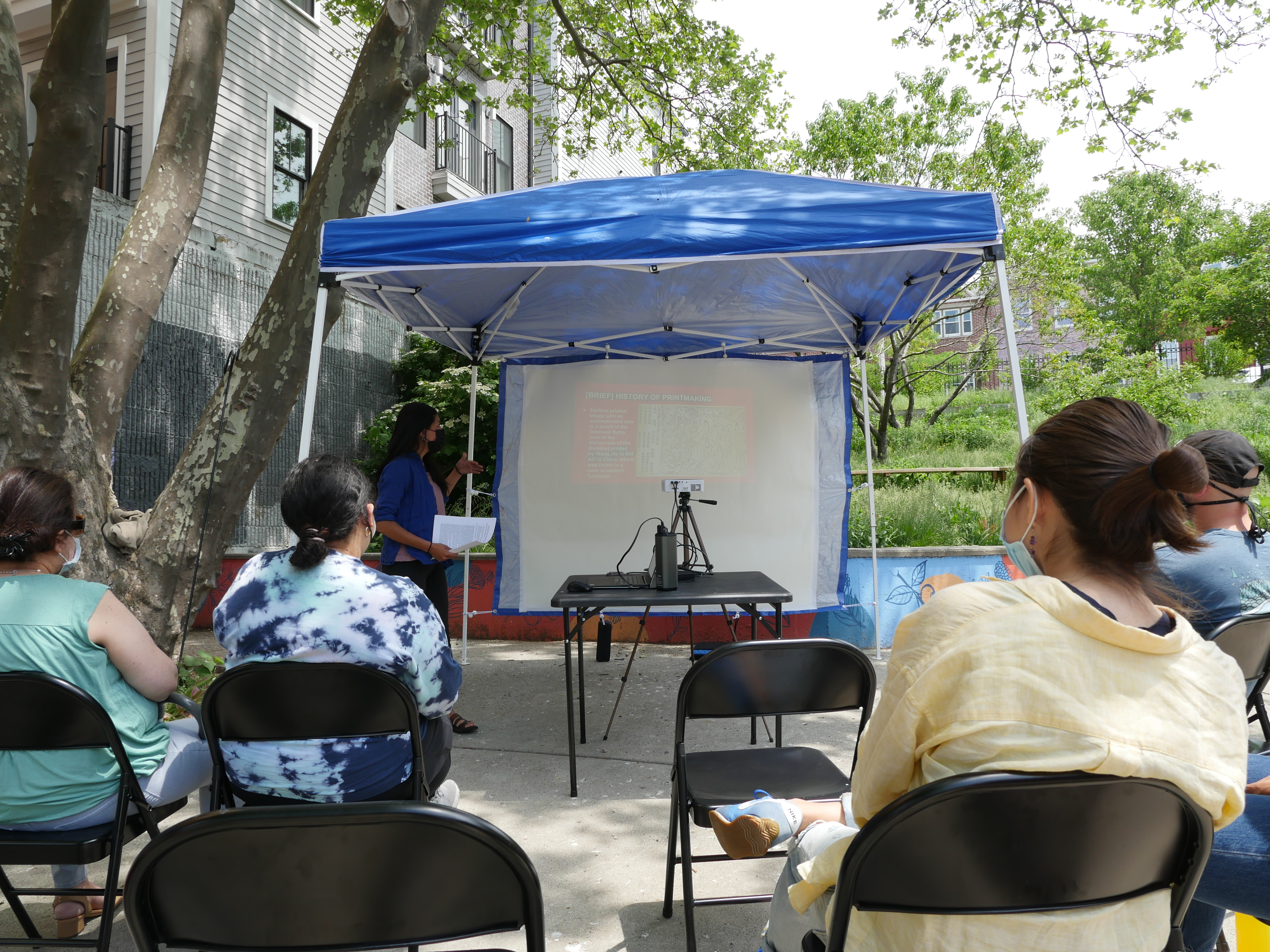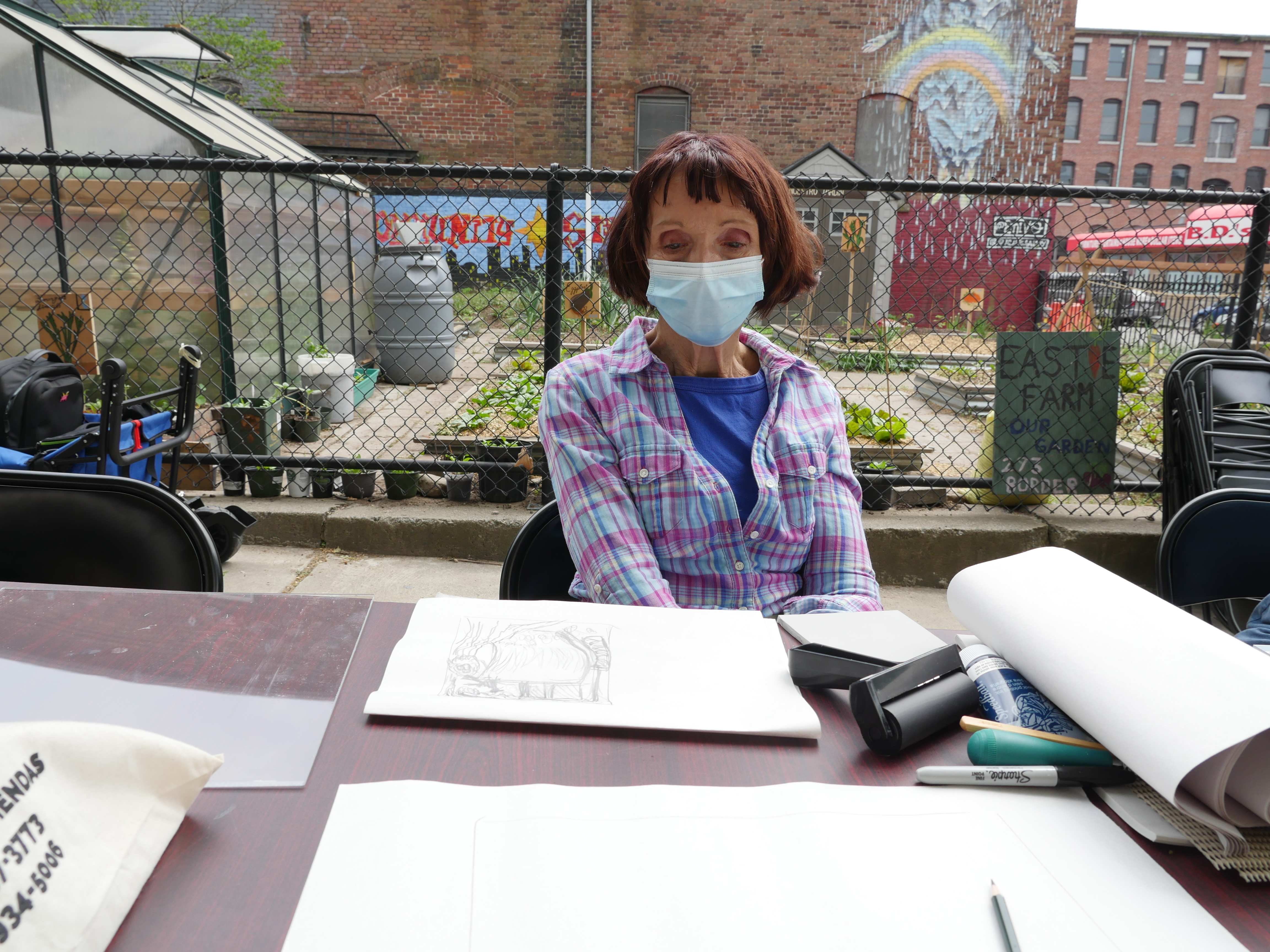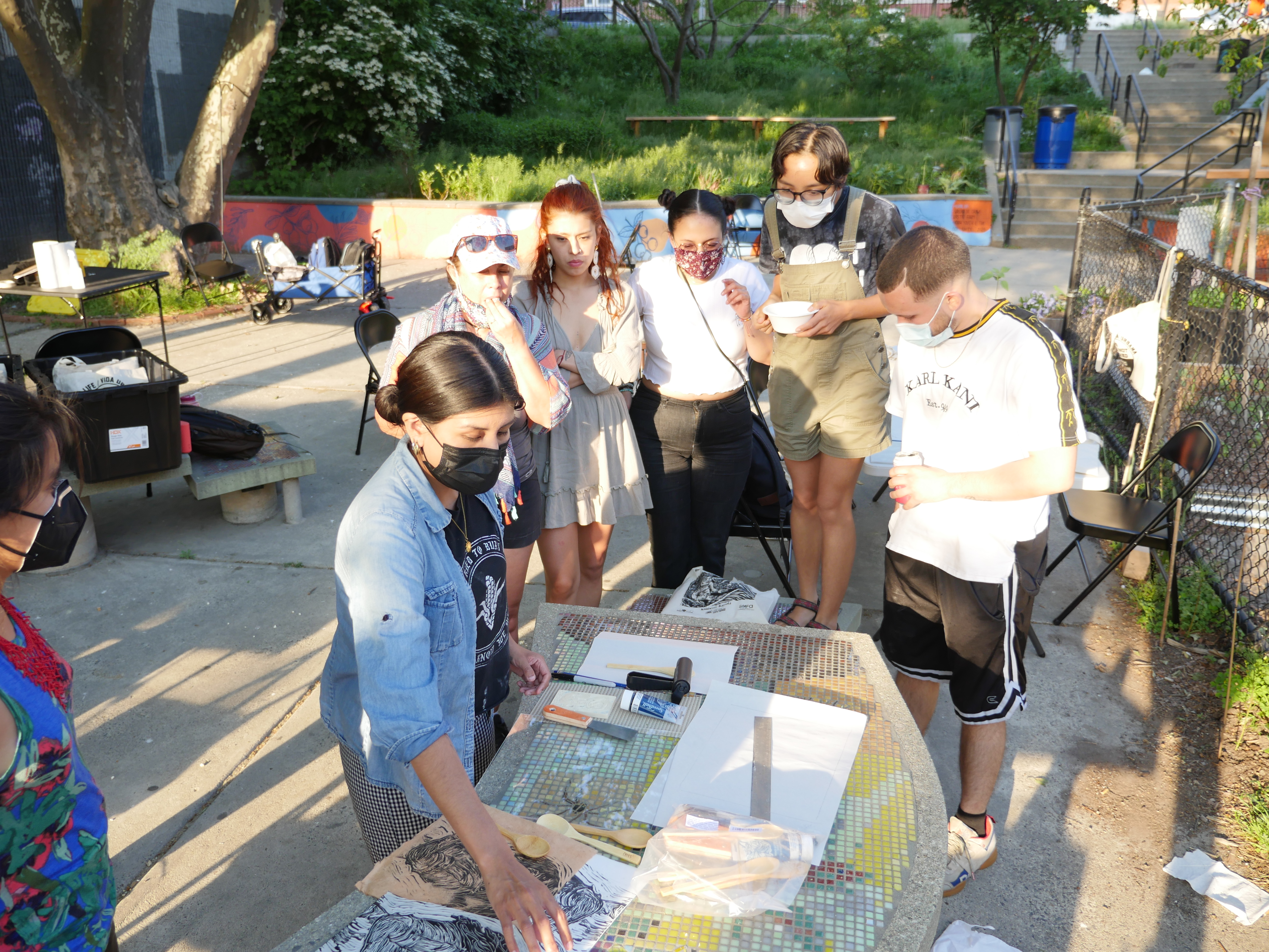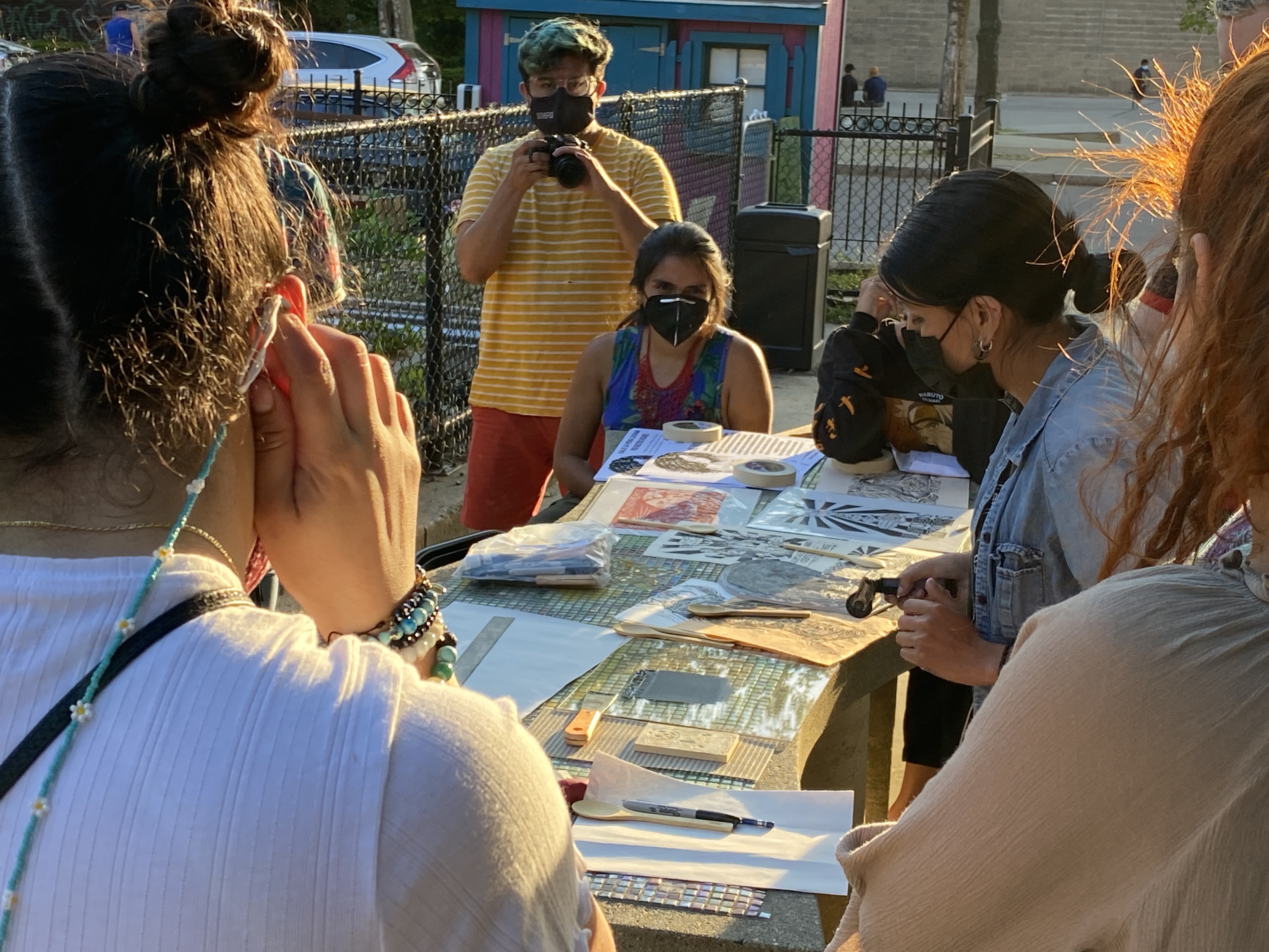 Community Poster Making 101, was a two-day collaborative community education workshop held at Eastie Farm in East Boston that taught about the history of printmaking as a form of protest, it gave the community members a chance to learn about eviction defense and places they could contact if they needed help, and gave participants supplies and knowledge to create their own prints from kits provided, the knowledge to create their own imagery, and the tools needed to reproduce and use this technique to further their voice and artistic practice from their own personal studios wherever they might be.