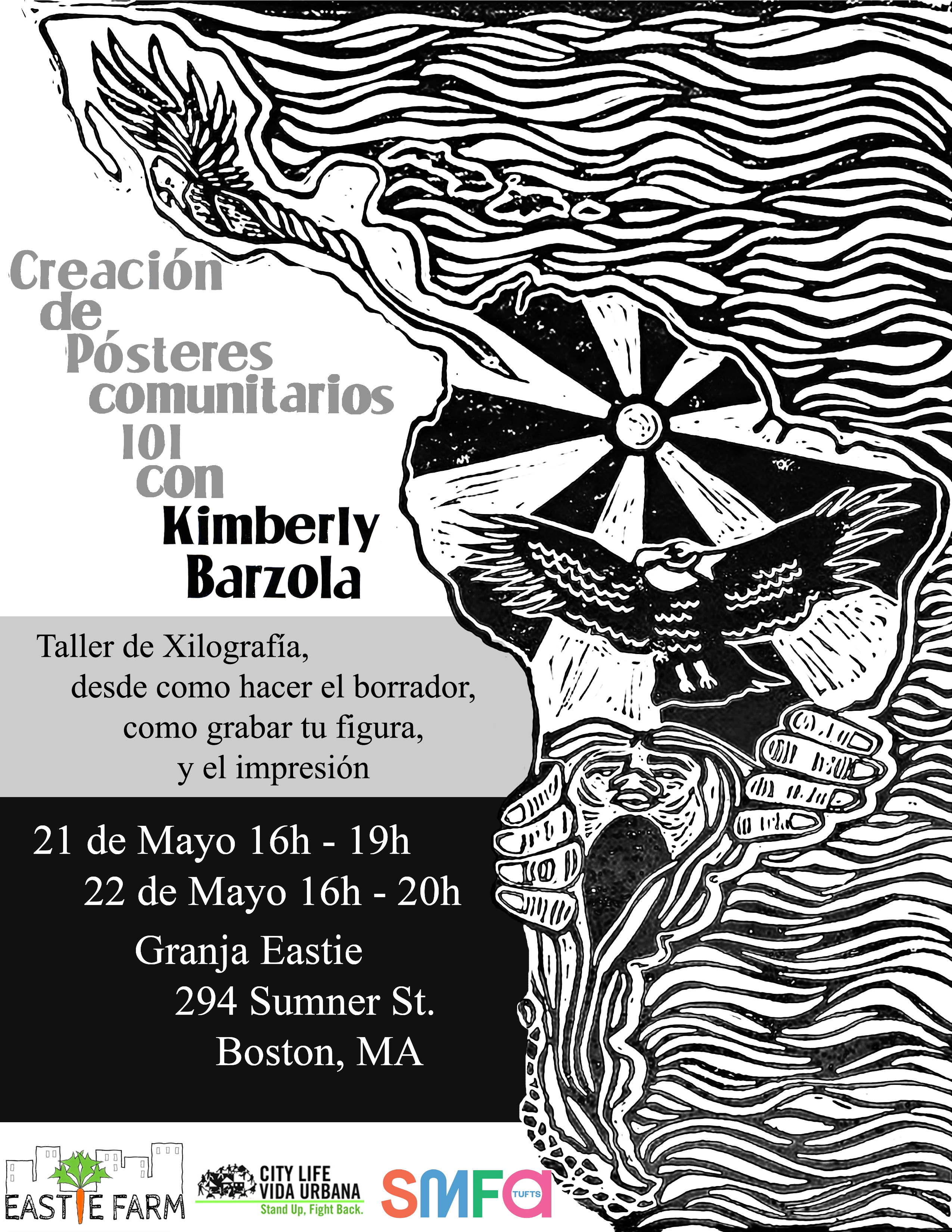 Organized by Gabriela Cartagena of City Life Vida Urbana, Educator and activist Kim Barzola, Andrew Cain, Jorge Gomez-Gonzalez, and Kenton Bueche Students from SMFA @ Tufts University.